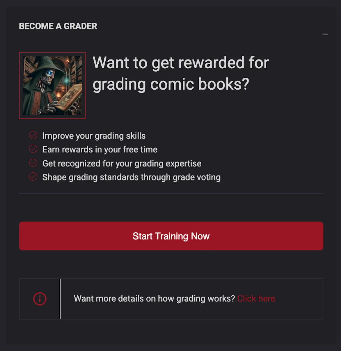 For comic owners who’d rather rely on a trusted group of expert graders, we’re introducing Paid Grading. As you participate in community voting and build a record of accurate grading, you can rise through the ranks and get paid to grade comics for others. All paid graders are required to complete our training, which covers how to use our grading tools, document defects consistently, and apply standards with minimal bias. System performance checks help ensure that every paid grade is accurate, consistent, and delivered on time. Paid Grading will launch once there’s a strong pool of trained and qualified graders.